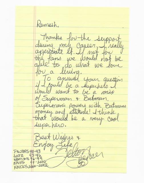 Sent 2 cards and Felton Spencer signed both. He also included this beautiful hand written letter of appreciation.