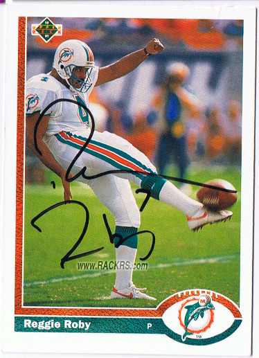 Reginald Henry "Reggie" Roby (July 30, 1961 – February 22, 2005) was an American football punter in the National Football League and a three-time Pro Bowler. He was drafted by the Miami Dolphins in the sixth round of the 1983 NFL Draft out of the University of Iowa. He also played for the Washington Redskins, the Tampa Bay Buccaneers, the Houston/Tennessee Oilers, and the San Francisco 49ers, retiring in 1999 after 16 seasons. Roby, who was also a standout pitcher on the Waterloo East High School team, was drafted by Major League Baseball's Cincinnati Reds. Roby instead chose to attend college. Despite the fact that he had experience at quarterback and possessed a strong arm, Iowa Hawkeyes head coach Hayden Fry made the 6'-4", 250 pound Roby a punter and kick off specialist, also using him for long range field goals. Roby helped popularize the now-standard two-step approach and often wore a watch to gauge his hangtime. He was one of a handful of African American kickers in National Football League history. Reggie Roby died of unrevealed causes at his Nashville home. http://en.wikipedia.org/wiki/Reggie_Roby