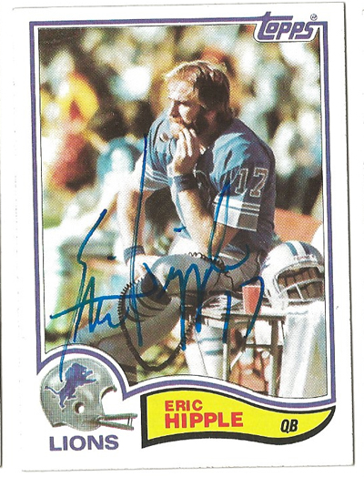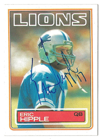 Eric Ellsworth Hipple (born September 16, 1957, in Lubbock, Texas) is a former professional American football player who was selected by the Detroit Lions in the fourth round of the 1980 NFL Draft. A 6'2", 198 lbs. quarterback from Utah State, Hipple played in 9 NFL seasons for the Lions from 1980–1986 and 1988-1989. His best year as a pro came during the 1985 season when he threw seventeen touchdown passes. http://en.wikipedia.org/wiki/Eric_Hipple