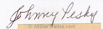 John Michael Pesky (born John Michael Paveskovich, September 27, 1919), nicknamed "The Needle" and "Mr. Red Sox", was a Major League Baseball shortstop, third baseman, and manager. During a 10-year career, he played in 1942 and from 1946-1954 for three different teams. He missed all of the 1943, 1944, and 1945 seasons while serving in World War II. http://en.wikipedia.org/wiki/Johnny_Pesky