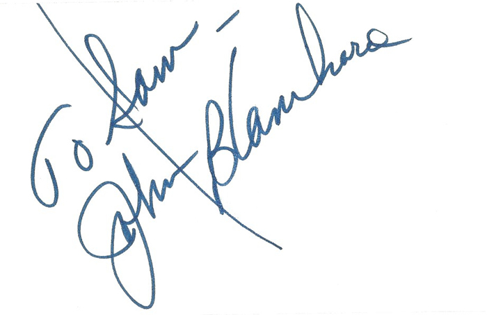 John Edwin Blanchard (February 26, 1933 – March 25, 2009) was a professional baseball player who played in the Major Leagues primarily as an outfielder and catcher from 1955 and 1959-1965. A defensive liability for the New York Yankees for most of his career, Blanchard is probably best-known for his play in the 1961 World Series. He hit 2 home runs in that series against the Cincinnati Reds and batted .400 for the entire series. In his career, Blanchard appeared in the World Series 5 times for the Yankees and holds the Major League record with ten World Series pinch-hit at-bats. Blanchard was the catcher who called the pitch that Bill Mazeroski hit for the first-ever series ending home run off Ralph Terry in the 1960 World Series in which the Pittsburgh Pirates defeated the heavily favored Yankees. Johnny Blanchard died of a heart attack in North Memorial Medical Center in Robbinsdale, Minnesota on March 25, 2009.